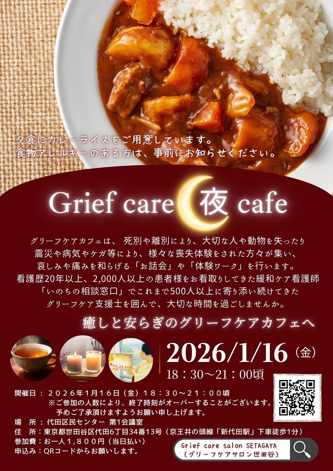 「2026/1/16(金)18:30~グリーフケア夜カフェ世田谷🌕」ご予約受付開始しました。