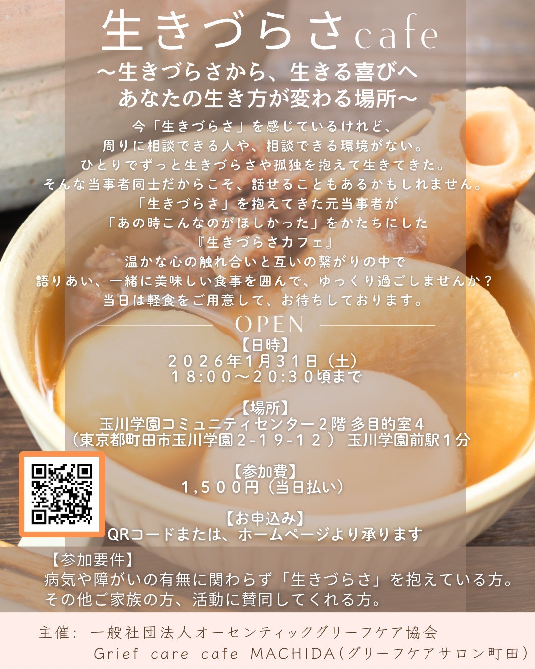 「2026/1/23(金)13:00~グリーフケアカフェ町田」ご予約受付開始しました。