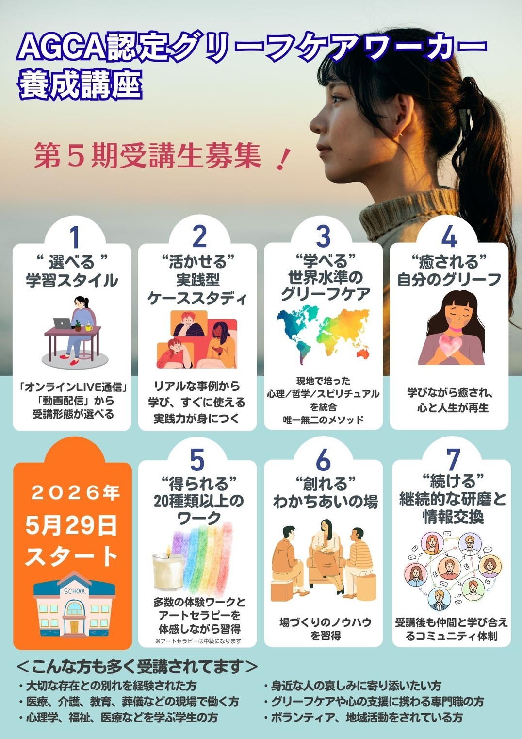 第5期 2026年5月29日スタート【初級】「AGCA認定グリーフケアワーカー養成講座📘」