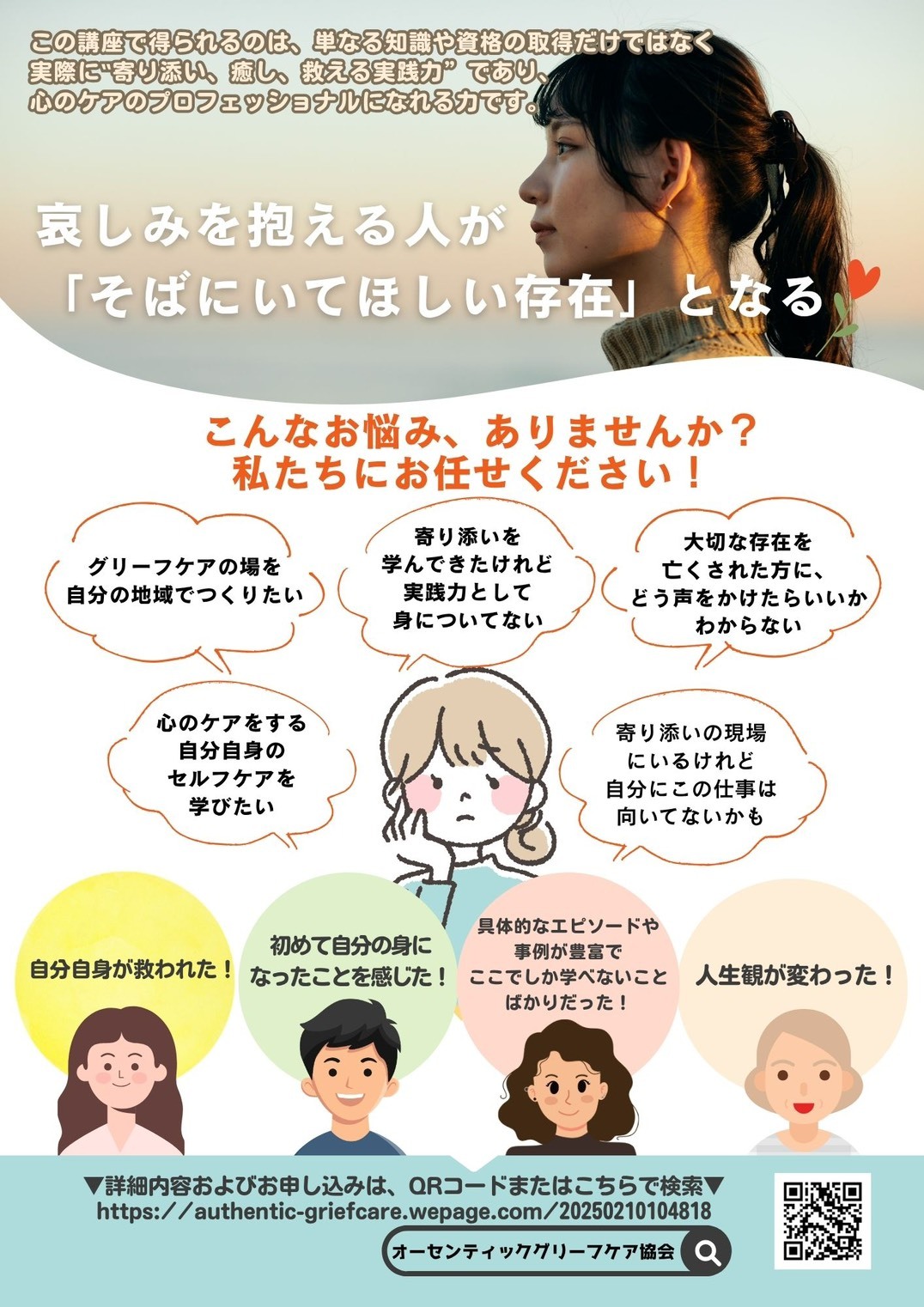 私たちが実践するのは、一時的な癒しではなく、人が本来持つ「再生する力」を引き出す “真のグリーフケア(オーセンティックグリーフケア)”。