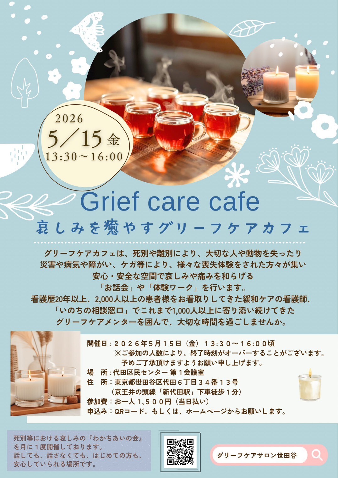 「2026/5/15(金)13:30~グリーフケアカフェ世田谷」ご予約受付開始しました。