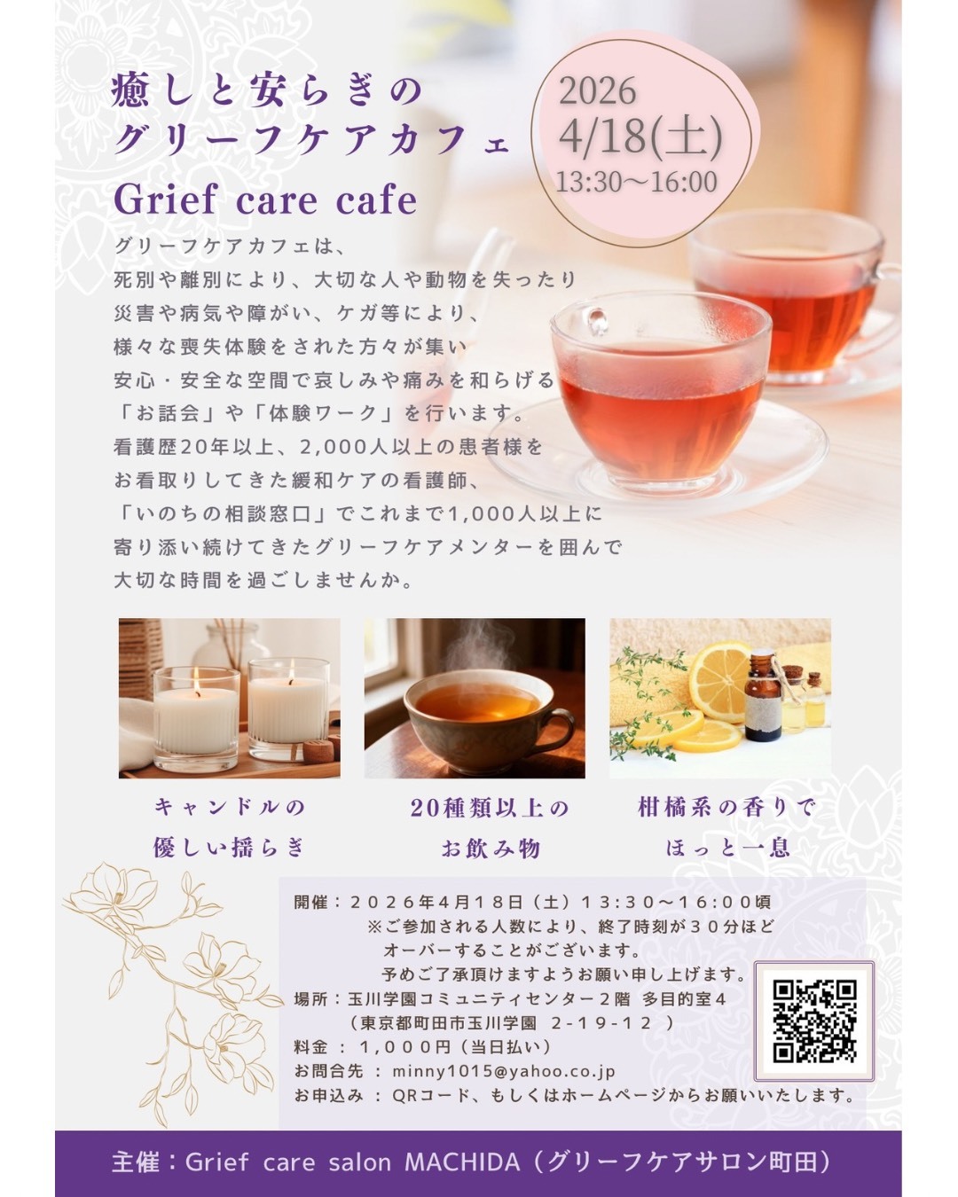 「2026/4/18(土)13:30~グリーフケアカフェ町田」ご予約受付開始しました。