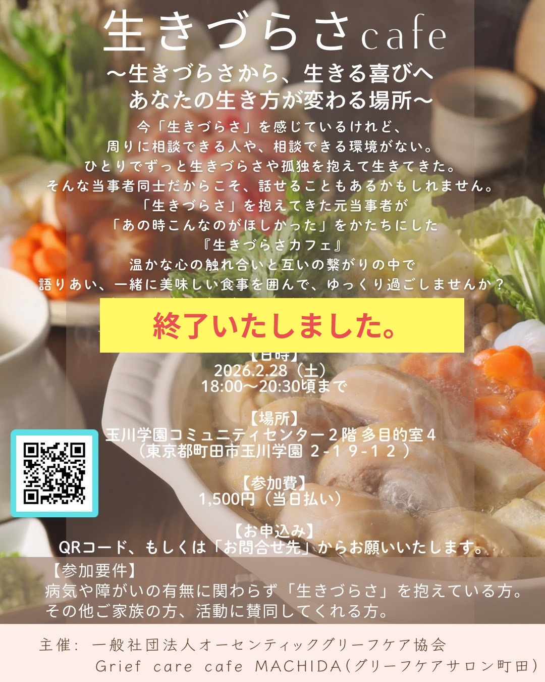 ※参加人数により終了時刻が30分ほどオーバーすることがございます。予めご了承くださいますようお願いいたします。